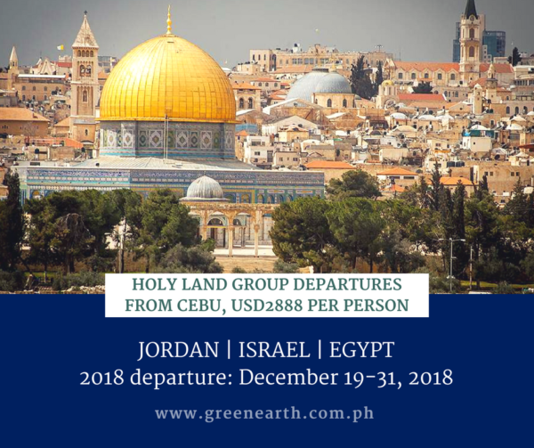 - USD200 per person booking deposit will be required to secure your slots for the group departures to Holy Land from Cebu based on dates indicated above. The booking deposit is non-refundable, but it will form part of your total amount due.